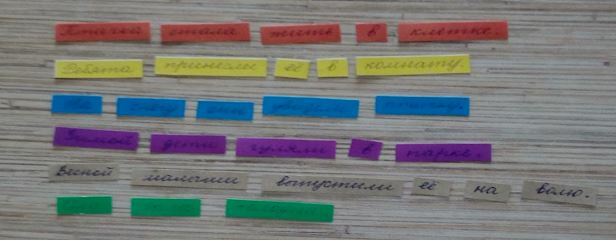 Затем в течение 5 минут собирают и наклеивают на половинку ватмана правило, которое «рассыпалось».