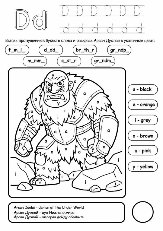 Рабочая тетрадь разработана на основе на трилингвального подхода, интегрирующего русский, якутский и английский языки. Такой формат способствует сохранению и развитию родного языка учащихся в процессе освоения иностранного языка, обеспечивая языковую преемственность и межкультурную компетентность. Рабочая тетрадь-раскраска ориентирована на региональную этнокультурную составляющую дополнительного образования. Структура рабочей тетради основана на алфавитном принципе английского языка, где каждая буква представлена изображением конкретного персонажа якутского героического эпоса «Нюргун Боотур Стремительный». Такой подход позволяет интегрировать лингвистические и культурные элементы, способствуя формированию межкультурной компетенции и глубокому знакомству с традиционным эпическим наследием народа саха.