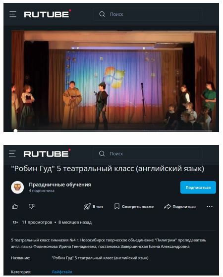 5 театральный класс гимназия №4 творческое объединение «Пилигрим» г.Новосибирск