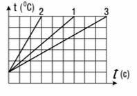 1. (Всеросс, 2020, МЭ, 9) Три тела одинаковой массы, изготовленные из разных материалов, греют нагревателями одинаковой мощности. График зависимости температуры t показаны на рисунке. Удельная теплоемкость первого тела равна с. Потери теплоты пренебрежимо малы. Чему равны удельные теплоемкости второго и третьего тела?