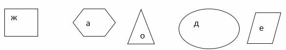 Определить название темы урока поможет следующее задание. Обучающимся раздаются карточками с геометрическими фигурами в определенной последовательности. На доске те же самые фигуры в хаотическом порядке с вписанными в них буквами. Учащиеся должны определить и составить тему урока.