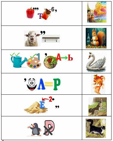 В каждой сказке говорилось о каком-то животном, но они оказались зашифрованы. (Слайд с ребусами.) При правильном варианте ответа проявляется иллюстрация животного из сказки. Отгадайте ребус, назовите животное и скажите из какой оно сказки.