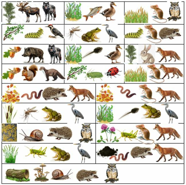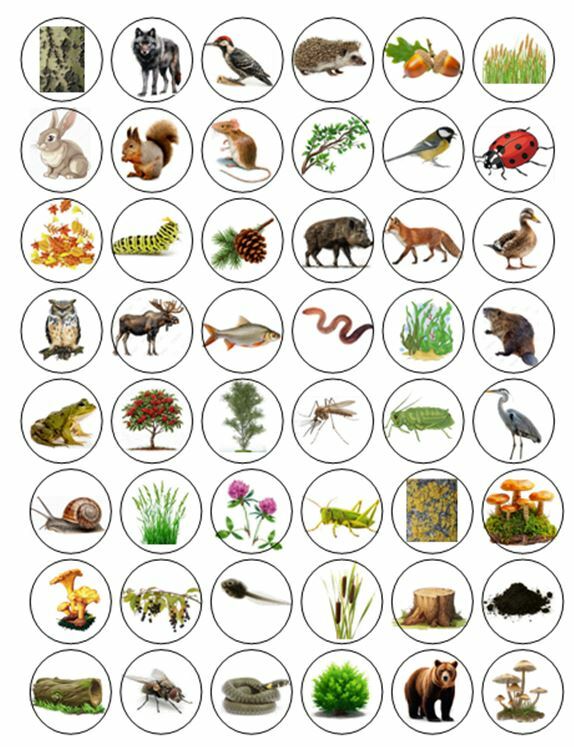 Из круглых картинок выбери любую. Найди ее на игровом поле. А теперь соедини линиями всех, кто связан с этим объектом в пищевой цепочке. Объясни свой выбор.