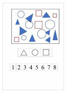 - Посчитать количество треугольников, кругов, квадратов и соединить «волшебной» линией каждую фигуру с подходящим числом.