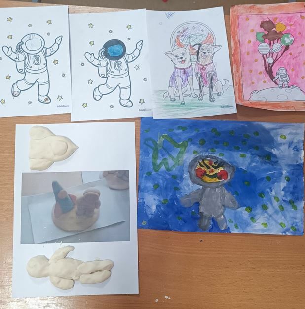 Оборудование: тесто соленое, стеки, краски, кисти, раскраски на тему «космос»