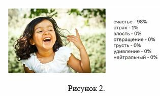 После выполнения заданий на Острове и проведения зарядки рекомендуется предложить детям воспользоваться нейросетью "Распознавание эмоций человека Frisson". Эта система анализирует фотографии участников (Рисунок 2.) и предоставляет количественную оценку их эмоционального состояния, выраженного через уровни радости, счастья, страха, гнева, отвращения, грусти и удивления (сайт https://demo.frisson.ai/portfolio/demo-6/)
