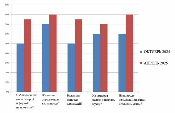 Из приведенных в гистограмме (Рисунок 1) данных мониторинга анкетирования учащихся виден рост осознанного отношения их к окружающей среде.