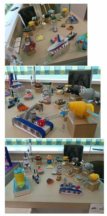 - несколько объектов, входящих в макет, являются творческими продуктами отдельных исследовательских, творческих проектов: танк Леонардо и танк Армата Шилова Владимира (7 лет), ледокол Арктика Шилова Льва (6 лет), 4 макета космических кораблей «Восток», «Союз», «Орел» (10 лет), авторские модели автомобиля мальчиков (9-10 лет), экспериментальная строительная машина «экскрандозер» Белоусова Михаила (8 лет), танкопланер Спиридонова Влада (10 лет).