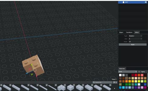 Каждую деталь можно индивидуально настроить: изменить её цвет, задать положение и ориентацию в трёхмерном пространстве. (Рис. 4) Такая гибкость позволяет обучающимся экспериментировать с конструкцией, не ограничиваясь стандартными конструкциями.
