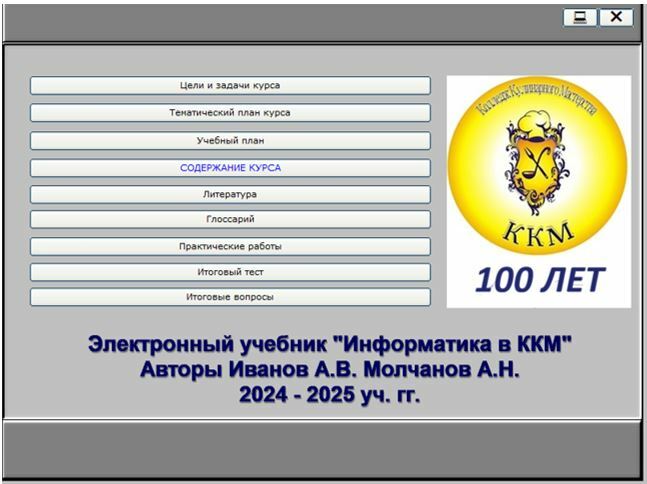 В результате анализа учебной литературы по дисциплине «Информатика и ИКТ» [1, 2, 3, 4] с точки зрения ее эффективности в обучении и удобства работы с ней в процессе получения теоретических и практических знаний, изучения ФГОС по профессиям СПО «43.01.09 Повар, кондитер» и др. [5] было определено основное содержание образовательного материала [6] и компетенции, обязательные к формированию в ходе изучения курса. При подготовке к созданию инновационного программного продукта были проанализированы следующие электронные оболочки ОСУ 2.1, PDF Commander, Teache Book Lite 4.1, SunRav BookEditor, ConstructorElectronicsBook, CourseLab и Obolochka автора Молчанова А.Н. Далее были определены требования к электронным пособиям [10, 11, 15, 16, 17]: