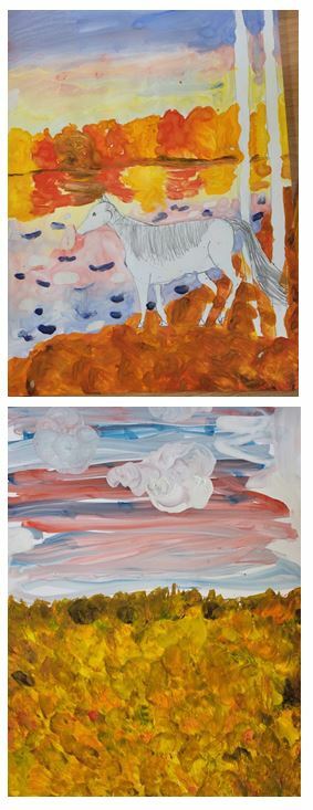 В младших классах большинство детей еще не могут работать аккуратно. Часто используют одну краску (небо синее, трава зеленая). Не могут передать оттенки цвета. Учитель должен показать, как легко и просто можно добиться красивых и разнообразных цветов на своей работе.