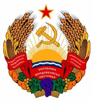 Государственный герб Приднестровской Молдавской Республики представляет собой изображение скрещенных серпа и молота, символизирующих единство рабочих и крестьян, в лучах солнца, восходящего над Днестром, обрамлённых по окружности гирляндой из колосьев и початков кукурузы, фруктов, виноградных гроздей и лоз, листьев, перевитой красной лентой с надписями на перевязи на официальных языках (молдавском, русском и украинском):