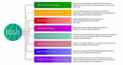- знакомятся с востребованными профессиями реального сектора экономики из семи сред профориентации: социальной, умной, креативной, безопасной, комфортной, деловой и индустриальной;