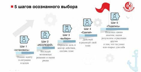 Но самой главной отличительной чертой этой программы является то, что параллельно изучению профессий, ребята знакомятся еще и с пятью шагами осознанного выбора.