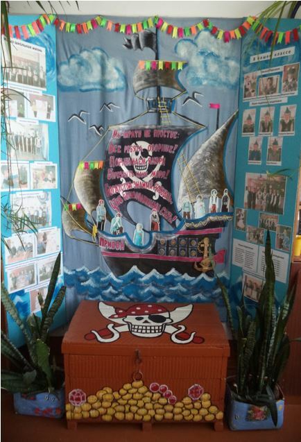 Наша совместная работа по оформлению классного уголка очень быстро сплотила всех детей в единую команду, увлекла общей идеей, мотивировала на учебу и уважительное отношение к своему капитану – классному руководителю. Часто во время перемен мы играем в пиратов, используя разные предметы и игры, хранящиеся в старом пиратском сундуке.