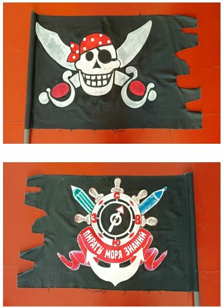 Набрав в очередной раз класс из семи шумных непоседливых первоклашек, я назвала их шутливо бандой любознательных разбойников. Моих ребятишек такое высказывание в свой адрес привело в полнейший восторг, они со свойственной детям бурной фантазией принялись развивать предложенную мной тему в увлекательную игру и назвали себя командой бесстрашных пиратов, не признающих обычных правил и законов. Да, пираты такие! Бесстрашные исследователи, первооткрыватели и даже похитители богатств! Но эту неудержимую энергию можно направить в нужное русло. Просто необходимо! И я предложила своим пиратам стать капитаном команды и оформить в классе наш особенный, самый настоящий пиратский фрегат. Мои юные пираты были в полном восторге! Пришли в школу к учителю, а попали на пиратский фрегат с самым настоящим капитаном, единомышленником и справедливым руководителем, опытным морским волком, знающим точный маршрут по морю знаний. Мы решили сообща, как должен выглядеть наш корабль, придумали ему название, сами сочинили наш пиратский девиз, который написали на раскрытом парусе, распределили обязанности и даже заимели самый настоящий пиратский флаг. Я, как человек творческий и неугомонный, тут же принялась за дело: на куске синей ткани, символизирующей море и небо, нарисовала пиратский фрегат, несущийся на всех парусах по морю знаний. На парусе красуется наш девиз, сочиненный коллективно нашей дружной командой: